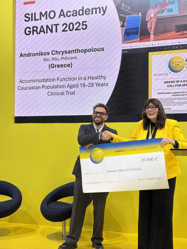 Στο πλαίσιο της φετινής SILMO Paris, μία σημαντική διάκριση ήρθε να αναδείξει το ελληνικό επιστημονικό έργο στον χώρο της οπτικής και οπτομετρίας. Ο Ανδρόνικος Χρυσανθόπουλος, υποψήφιος διδάκτορας και ενεργός επαγγελματίας του κλάδου, τιμήθηκε με το Silmo Academy Grant, μια βράβευση που αναγνωρίζει ερευνητικές προσεγγίσεις με ουσιαστική συμβολή στην εξέλιξη της γνώσης και της κλινικής πρακτικής. […]